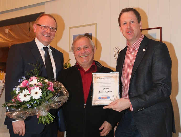 Frank Breitbach und Uwe Berens ehren das Gründungsmitglied Dietmar Henk (Mitte)